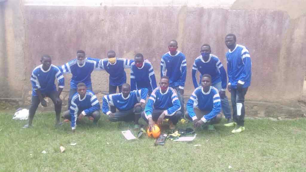 L’un des clubs sportifs de Bwira inaugure les maillots bleus, dons du Club Sportif de la Venise Verte.