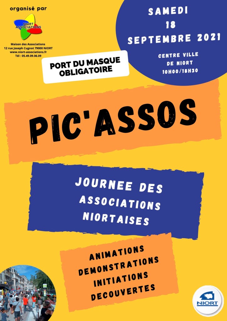 La crise sanitaire commence à s’éloigner et c’est donc l’occasion de se retrouver autour d’évènements de convivialité. Vous pourrez nous retrouver lors de l’évènement Pic’Assos à Niort, le 18 septembre 2021, dans le centre ville de Niort ! Venez nous rejoindre sur notre stand !